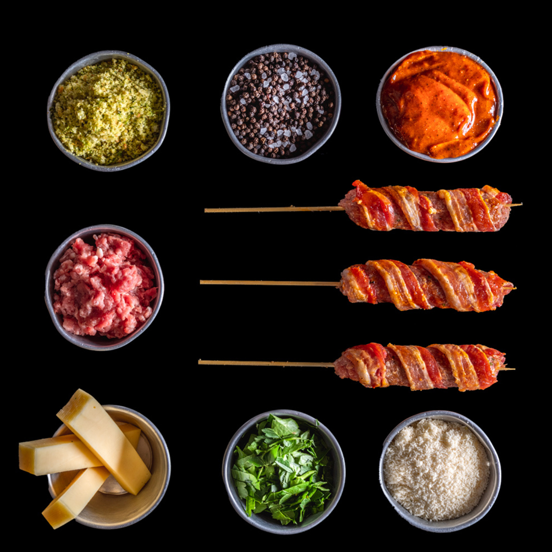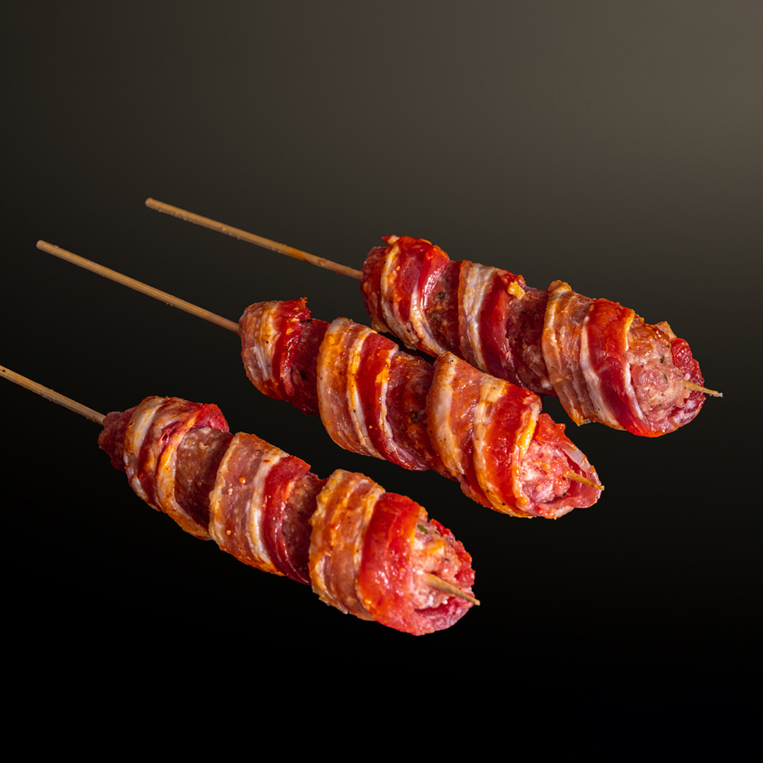 Un morbido impasto di magro macinato, prezzemolo, parmigiano e pan grattato avvolto da una sottile fetta di pancetta insaporita in salsa barbecue… sconsigliato ai deboli di cuore!